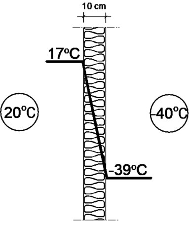 Za ilustraciju je uzeta ploča od staklene vune debljine 10 cm i gustoće oko 30 kg/m3. Ako se pretpostavi da je s jedne strane temperatura -40˚, a s druge strane 20˚, računica pokazuje da će s jedne strane temperatura na površini vune biti 17˚, a s druge -39˚. (autori ovog teksta se bave problematikom toplinske izolacije koju ne razumiju; sve navedene vrijednosti smo dobili od kolega koji se bave energetskom učinkovitošću, pa im ovim putem zahvaljujemo na usluzi).
